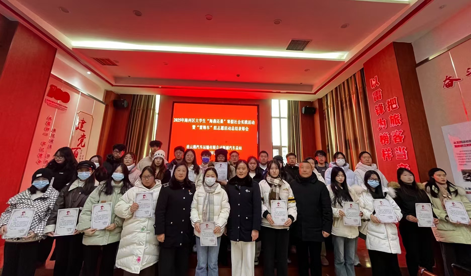 近日,2025年“雷鋒車”組春節(jié)志愿活動暨海州區(qū)大學(xué)生“海燕還巢”寒假社會實踐活動總結(jié)表彰會在連汽新浦汽車總站圓滿落幕。會議聚焦春節(jié)期間“雷鋒車”組開展各類志愿服務(wù)活動,通過表彰近百名大學(xué)生志愿者在春節(jié)假期中的突出表現(xiàn),展現(xiàn)了新時代青年與“雷鋒車”組共繪城市文明新風(fēng)尚的生動實踐。